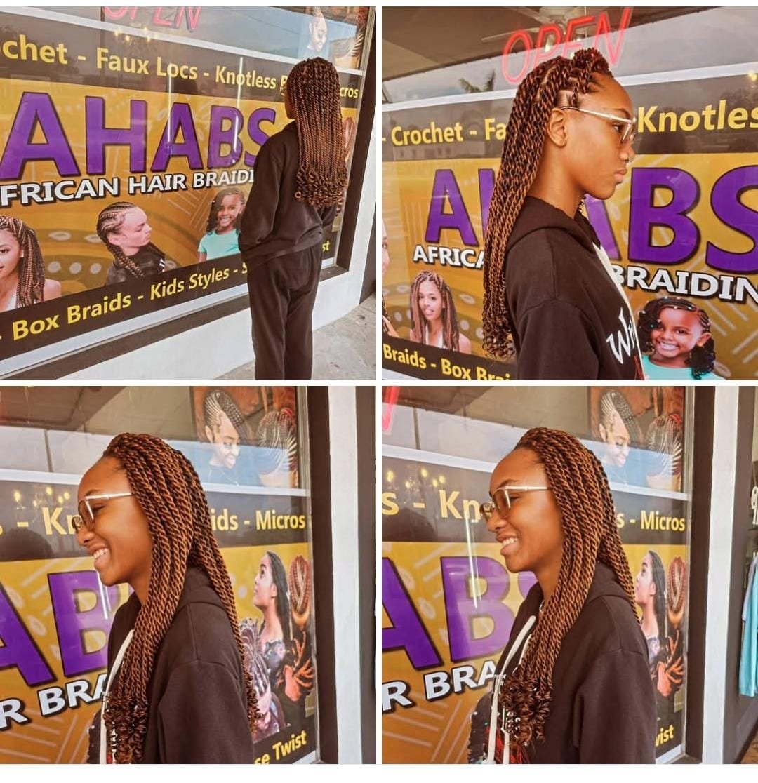 Posted on christina lane Today was last minute, but she squeezed me in.. clean shop clean bathroom. Very welcome she made me feel at home. Definitely recommend 💯💯Posted on Iesha Green Great experience and very professional, great quality of work.Posted on janet parry I want to say that Ashah is an amazing person and stylist. She is very professional and her salon is very neat and clean. She took a chance on me after my former stylist went A-Wall and left me in a bind. I have crochet / faux locks that look like dreads but braided in and I have Caucasian hair that is wavy. She took one look at my hair and said yes I can help you. I was so happy. After working on my hair by taking my braids out, cleaning them, giving me a zing shampoo, then putting my. Raids back in, I was so pleased with my hair that I started crying for joy. Asha knows what she is doing and I already rebooked with her and I would recommend anyone to her. She does so many different types of braiding and dreads. Thank you again Ashah JanetPosted on Skyler Knapp She was such a kind soul and an amazing braider! Reached out to her for the soonest available appointment thinking it would be the next day and she offered to come in on her off day that same day I called and an hour later, she was working on my hair to give me exactly what I want and more! Was not too expensive and had amazing Customer service and hospitality! Washed my hair for me because it was on such short notice for only a small fee! She also will make sure it’s what you want and ask you questions as you go to make sure it’s perfect for you! Lastly, she uses good hair products, and Is pretty fast! Also, very cute gifts (bags fans earrings etc) she sells in her shop that are inexpensive! Shes a great braider and great person! Definitely come see her , she’ll make you feel at home! 🫶🏽Posted on Lexie Mrs. Ashah is the sweetest lady I have ever met. She made me feel welcomed and loved even though I just met her. 💕 My hair looks amazing, and I will definitely be back again to get my hair done. I recommend 100%! Please please please come to her for your braiding needs. 🌻Posted on Michelle Farazi After years of loyalty to another salon, I grew frustrated with their declining customer service and decided to give Ahab’s a try. I’m so glad I made the switch! Ashah did an incredible job with my braids—her attention to detail is unmatched, and she has such a warm and kind spirit. The entire experience was top-notch. I can’t recommend her enough!Posted on Derinda Carter Asha is a beautiful lady. She is so talented and did my knotless medium box braids beautifully! She will ask what u like and deliver! I am Happy to have met her and she will always be my braid stylist!Posted on Amani Thurman I recently had my hair braided here and I am very happy with the results.